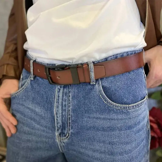 Men's Classic Black Leather Belt with Stylish Pin Buckle , Wide men belts